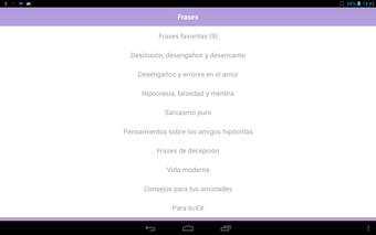 يحتوي التطبيق على مجموعة واسعة من العبارات والفئات، حتى تتمكن من اختيار الأنسب للوضع. يمكنك العثور على فئات مثل أحبك، أفتقدك، كان من الصعب الابتعاد، إلخ. يمكنك أيضًا العثور على عبارات لإخبار صديقك أنك آسف، أو أنك تشعر بشيء ما تجاهه أو تجاهها.